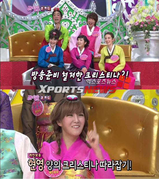 설 특집으로 진행된 <꽃다발>에서 MC가 크리스티나에게 이탈리아의 설에 대해 묻자 크리스티나는 독특한 목소리로 대답해 스튜디오를 웃음바다로 만들었다.