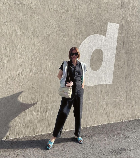 사진 속 박은지는 d라는 글자가 적힌 벽 앞에서 멋진 포즈를 취하는 모습. 올블랙 점프수트 의상을 입은 박은지는 볼록 나온 D라인에도 큰 키와 우월한 비율을 자랑했다.