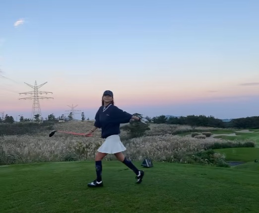 영상 속 진재영은 아름다운 자연을 배경으로 골프를 치며 여유로운 생활을 하고 있다.