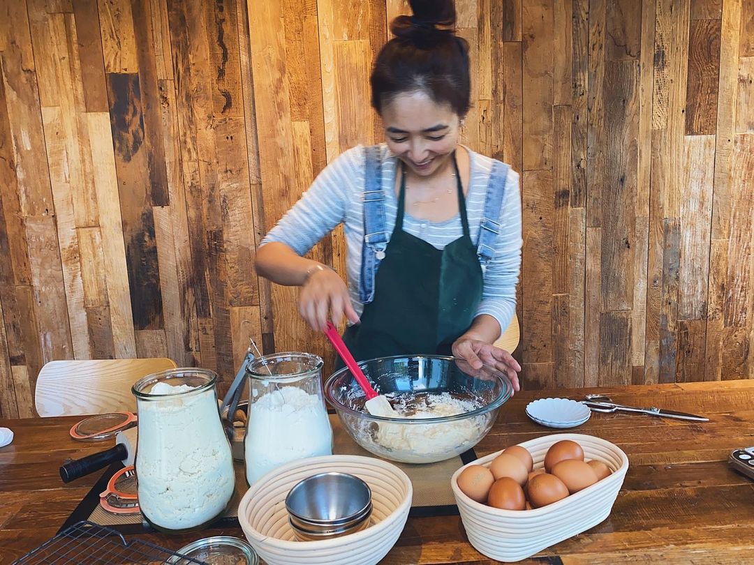 진재영은 10일 자신의 인스타그램에 "빵을 잘 굽는 할매가 꿈입니당. 이것도 독학이라 실패 확률이 매우 높지만 여튼 일거리 장만하는 건 선수 ㅎ 남편이 옆에서 사먹는 게 낫겠다고 또 맞을 소리를 하고 있네요"라는 글과 함께 사진을 게재했다.