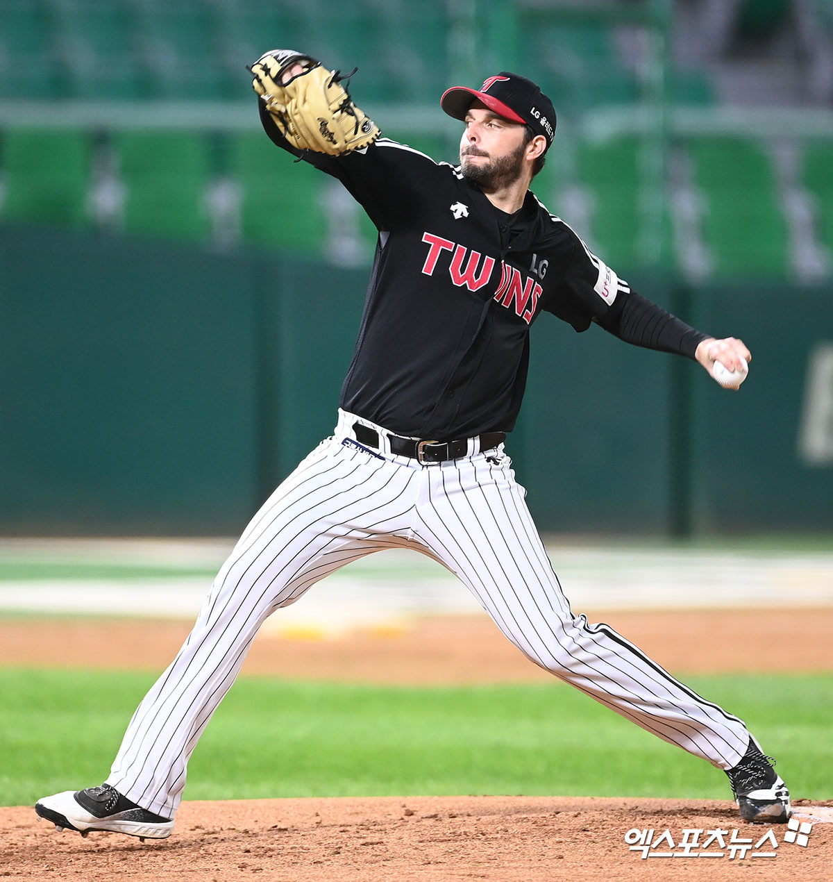 (엑스포츠뉴스 인천, 김한준 기자) 12일 오후 인천 SSG랜더스필드에서 열린 '2021 신한은행 SOL KBO리그' LG 트윈스와 SSG 랜더스의 경기, 2회말 LG 선발투수 수아레즈가 공을 힘차게 던지고 있다.