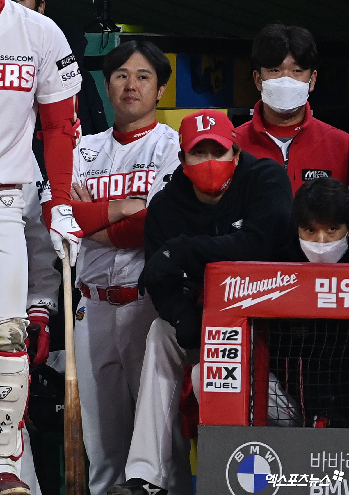SSG 최정이 경기를 지켜보고 있다.