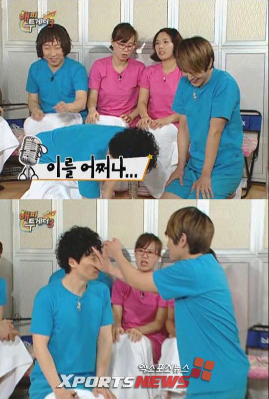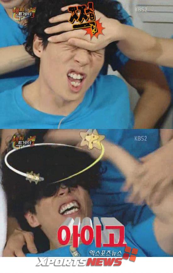 [엑스포츠뉴스=방송연예팀 원민순 기자] 유재석이 10일 방송된 KBS 2TV <해피투게더3>에서 샤이니 온유의 딱밤을 맞고 기절 직전까지 갔다.