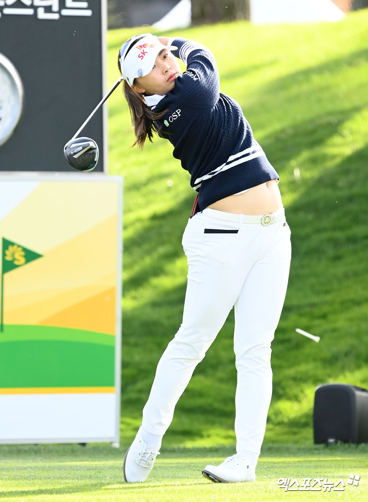 (엑스포츠뉴스 제주, 고아라 기자) 5일 제주 애월읍 엘리시안 제주 컨트리클럽(파72 / 6,653야드)에서 열린 '제15회 S-OIL 챔피언십'(총상금 7억 원, 우승상금 1억 2,600만 원) 1라운드 경기, 김지영2가 1번홀 티샷을 날리고 있다.