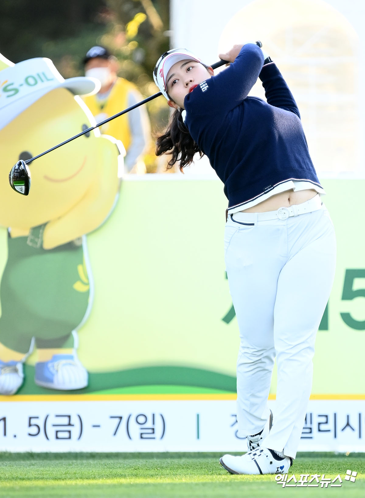 (엑스포츠뉴스 제주, 고아라 기자) 5일 제주 애월읍 엘리시안 제주 컨트리클럽(파72 / 6,653야드)에서 열린 '제15회 S-OIL 챔피언십'(총상금 7억 원, 우승상금 1억 2,600만 원) 1라운드 경기, 김희지가 1번홀 티샷을 날리고 있다.