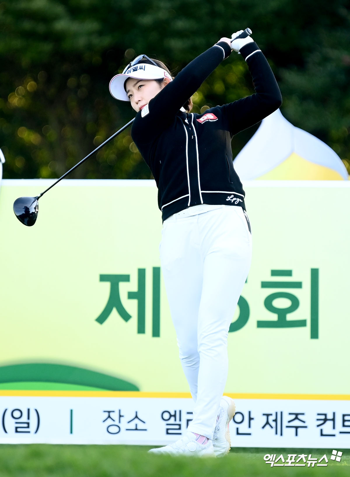 (엑스포츠뉴스 제주, 고아라 기자) 5일 제주 애월읍 엘리시안 제주 컨트리클럽(파72 / 6,653야드)에서 열린 '제15회 S-OIL 챔피언십'(총상금 7억 원, 우승상금 1억 2,600만 원) 1라운드 경기, 배소현이 10번홀 티샷을 날리고 있다.