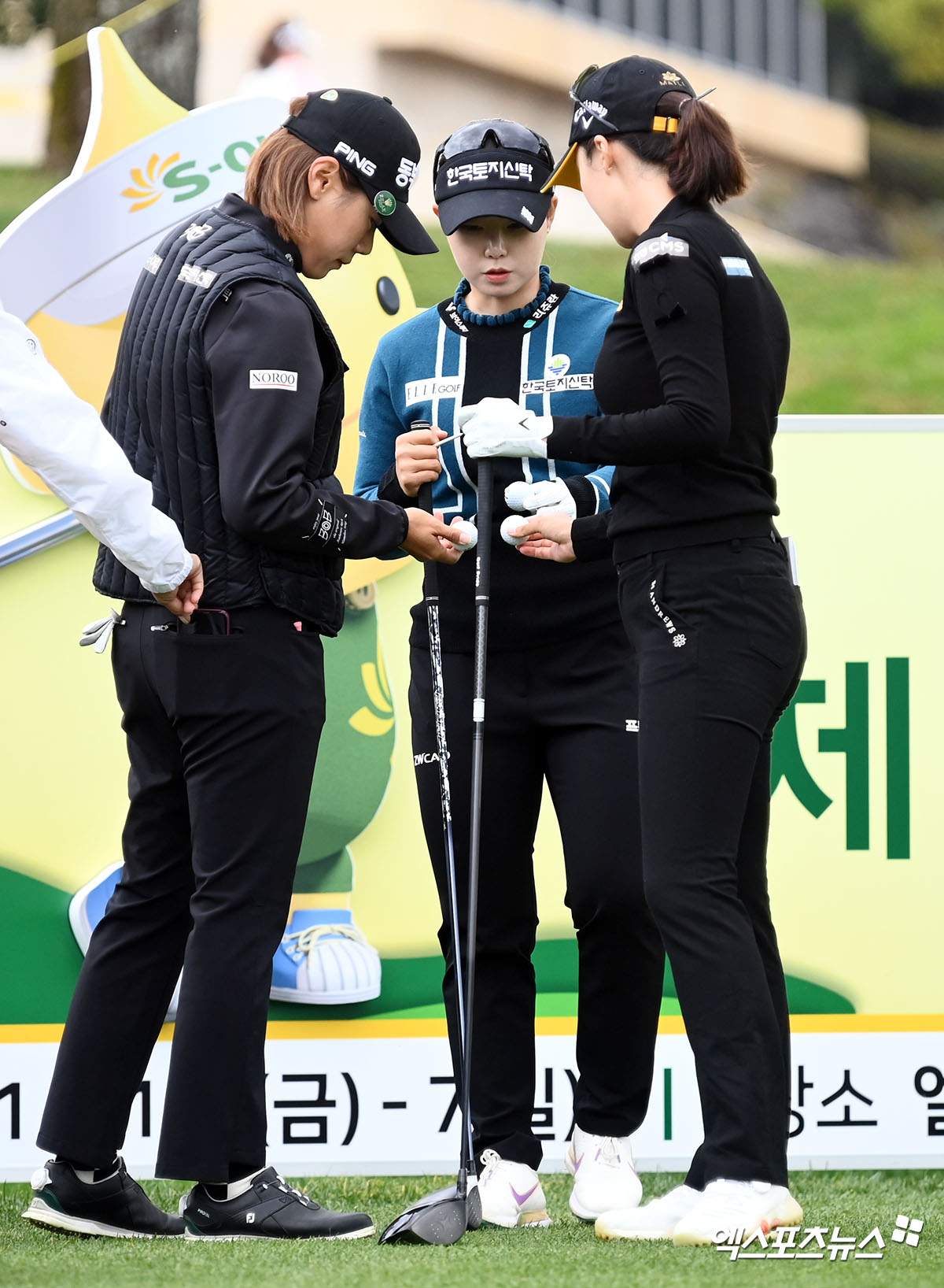 (엑스포츠뉴스 제주, 고아라 기자) 6일 제주 애월읍 엘리시안 제주 컨트리클럽(파72 / 6,653야드)에서 열린 '제15회 S-OIL 챔피언십'(총상금 7억 원, 우승상금 1억 2,600만 원) 2라운드 경기, 박주영 임희정 오지현이 1번홀 티샷을 준비하고 있다.