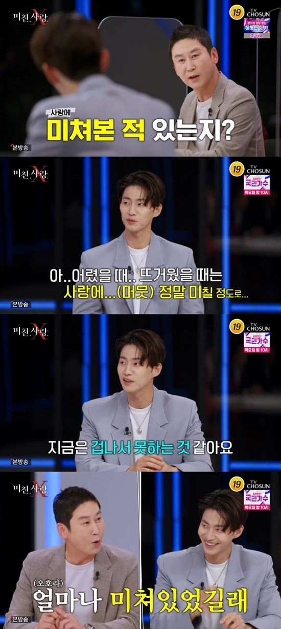 송재림은 "그런 사랑이 그리우면서도 지금은 겁나서 못하는 것 같다"고 털어놨다. 신동엽은 사랑에 얼마나 미쳐 있었기에 겁이나 나서 못하는 거냐며 더 궁금해 했다.