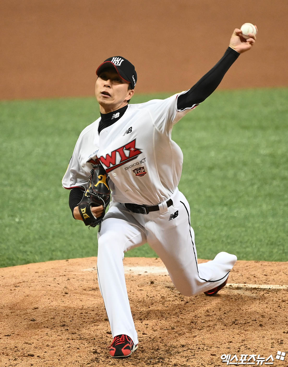 (엑스포츠뉴스 고척, 박지영 기자) 14일 오후 서울 구로구 고척스카이돔에서 열린 '2021 신한은행 SOL KBO리그' 포스트시즌 두산 베어스와 KT 위즈의 한국시리즈 1차전 경기, 8회초 2사 KT 조현우가 역투하고 있다.