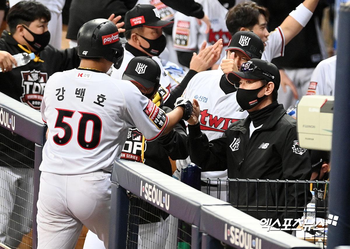 이강철 감독 '(강)백호와 주먹을 맞대며'[포토]