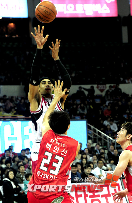 [엑스포츠뉴스 = 권태완 기자] 18일 오후 서울 잠실 학생체육관에서 열린 '2010-2011 현대모비스 프로농구' 서울SK와 창원LG의 경기에 문태영이 슛을 하고 있다.