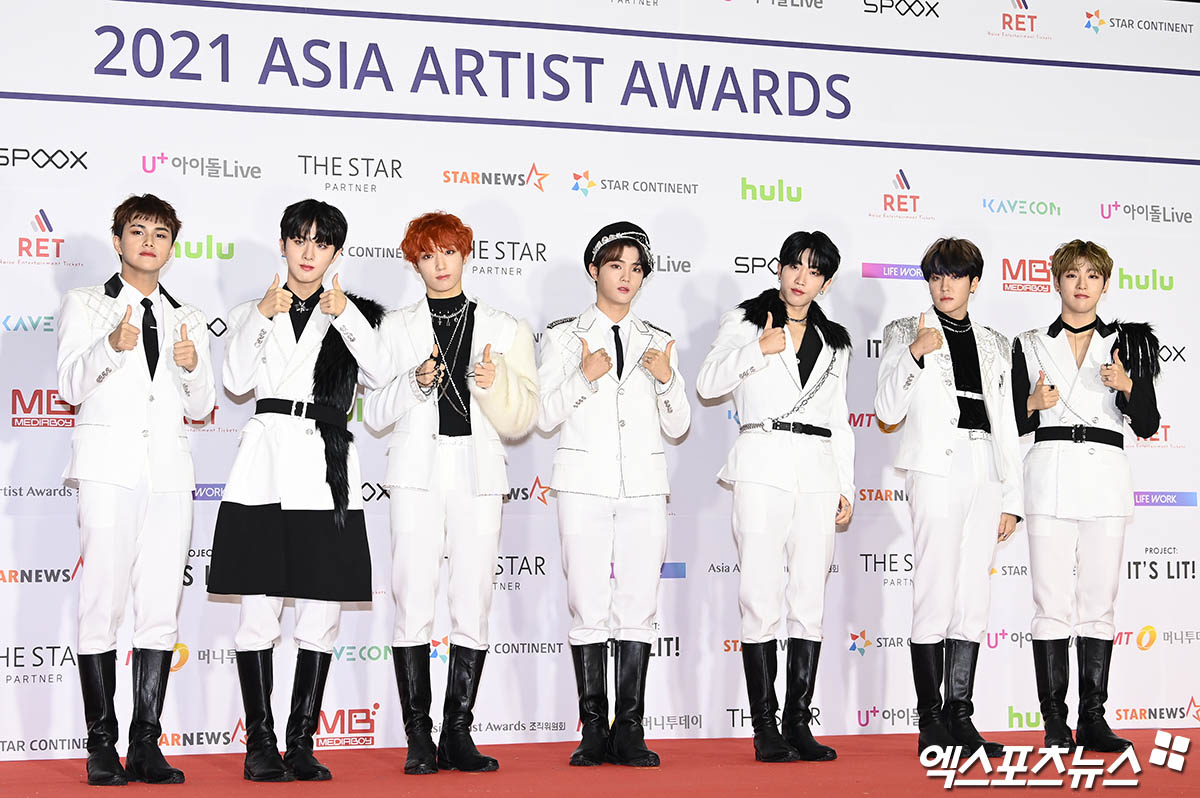 (엑스포츠뉴스 박지영 기자) 2일 오후 서울 화곡동 KBS아레나에서 열린 '2021 아시아 아티스트 어워즈(2021 Asia Artist Awards, AAA)' 레드카펫 행사에 참석한 그룹 킹덤이 포토타임을 갖고 있다.