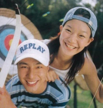 양궁장을 배경으로 촬영한 사진에서 조인성은 지금과 별반 다르지 않은 외모를 자랑하고 있지만, 신민아는 메이크업이 덜 된 탓인지 눈썹이 거의 없게 나온 것.
