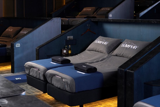 템퍼시네마는 NASA(미 항공 우주국)의 신소재로 유명한 프리미엄 매트리스&베개 브랜드 템퍼와의 콜라보레이션으로 탄생한 세계 최초 리클라이닝 침대 영화관이다.