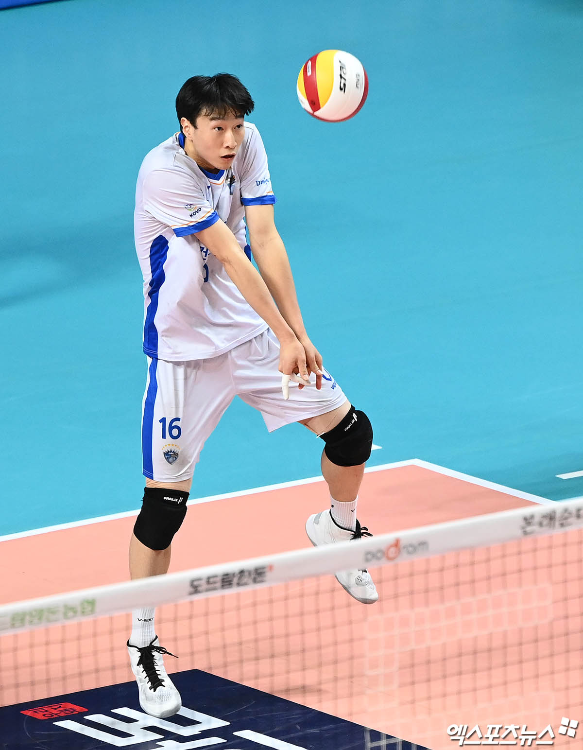 (엑스포츠뉴스 장충, 박지영 기자) 15일 오후 서울 장충체육관에서 열린 '2021-2022 도드람 V리그' 남자부 우리카드와 삼성화재의 경기, 삼성화재 정성규가 리시브를 하고 있다.