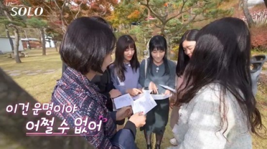 이날 솔로남녀는 12인은 커다란 나무 아래 놓인 카드를 한 장씩 선택해, 자신의 ‘운명곡’을 선택한다. 카드 안에 적힌 ‘운명곡’을 확인한 이들은 자신과 똑같은 곡을 선택할 상대가 누굴지 궁금해하면서 긴장과 설렘을 드러낸다.