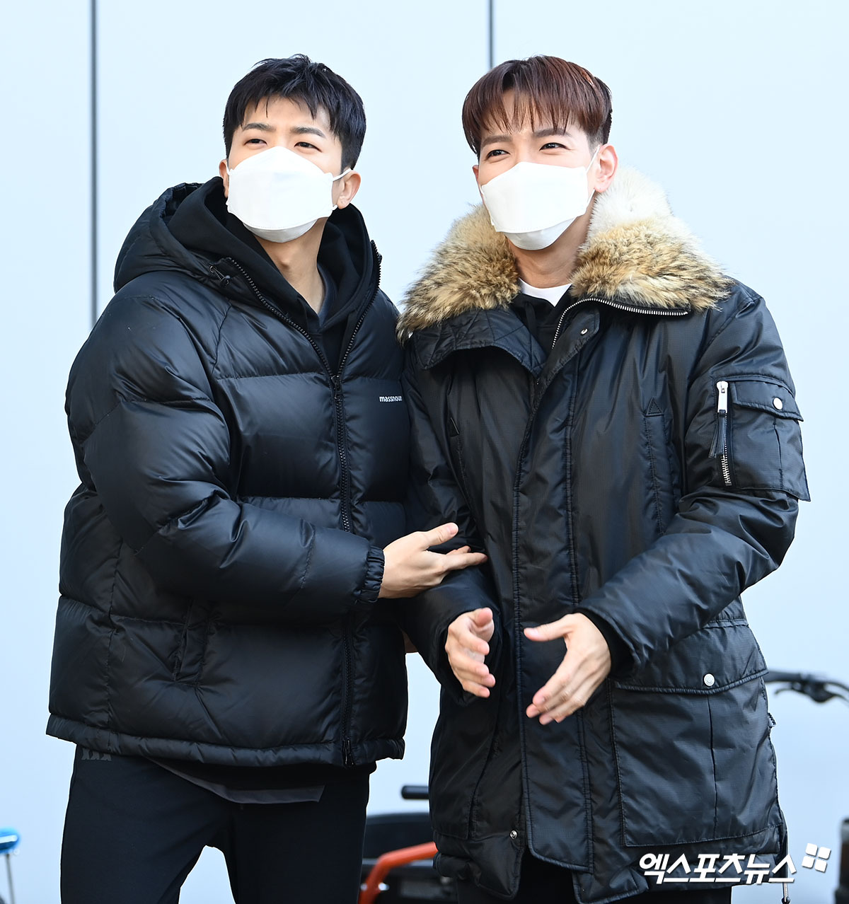 이날 '아는 형님' 녹화에 참석한 2PM 우영, 준케이가 포토타임을 갖고 있다.