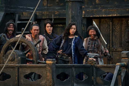 '해적: 도깨비 깃발'은 흔적도 없이 사라진 왕실 보물의 주인이 되기 위해 바다로 모인 해적들의 스펙터클한 모험을 그린 영화로 전국 극장에서 상영 중이다.
