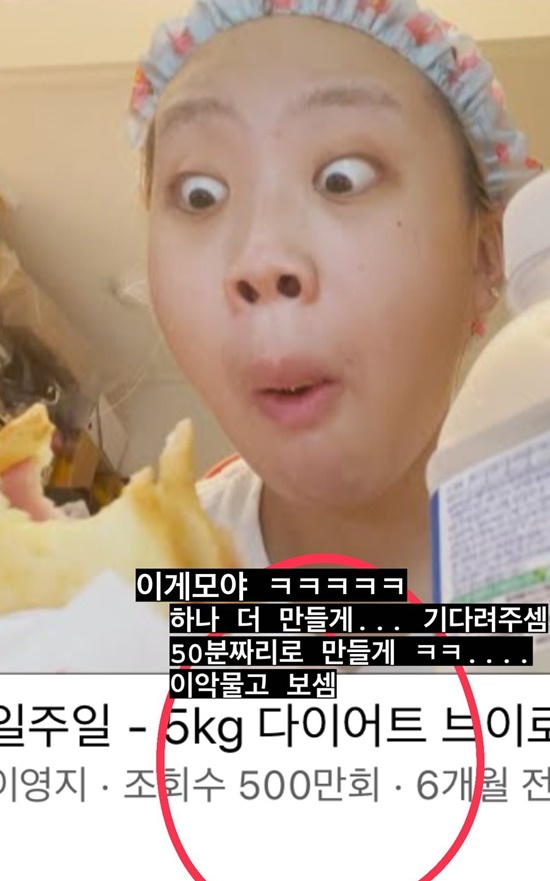 공개된 사진에는 이영지의 다이어트 브이로그 영상이 유튜브 조회수 500만뷰 기록이 담겨있다. 이영지는 깜짝 놀란 반응을 보이며 "하나 더 만들게 기다려주셈 50분 짜리로 만들게 이 악물고 보셈"이라고 예고해 팬들의 반가움을 자아냈다.