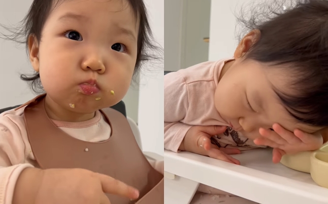 최희는 17일 자신의 인스타그램에 "밥 먹기 싫어서 인상 쓰고 졸린 척하고 ㅋㅋ 원래 이렇게 밥 한번 먹이기 힘든가요….? #밥 한번 먹이는데 한시간 #육아 난이도 상 아기"라는 글과 함께 영상을 게재했다.