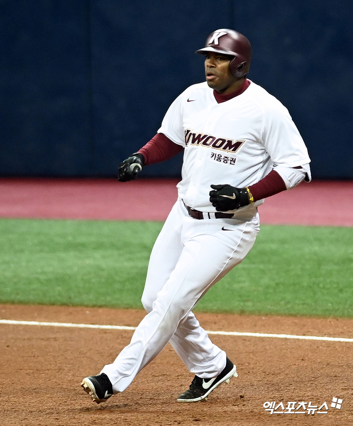 (엑스포츠뉴스 고척, 김한준 기자) 17일 오후 서울시 구로구 고척스카이돔에서 열린 ’2022 신한은행 SOL KBO리그’ SSG 랜더스와 키움 히어로즈의 시범경기, 4회말 1사 1,3루 키움 푸이그가 1타점 적시타를 날리고 있다.