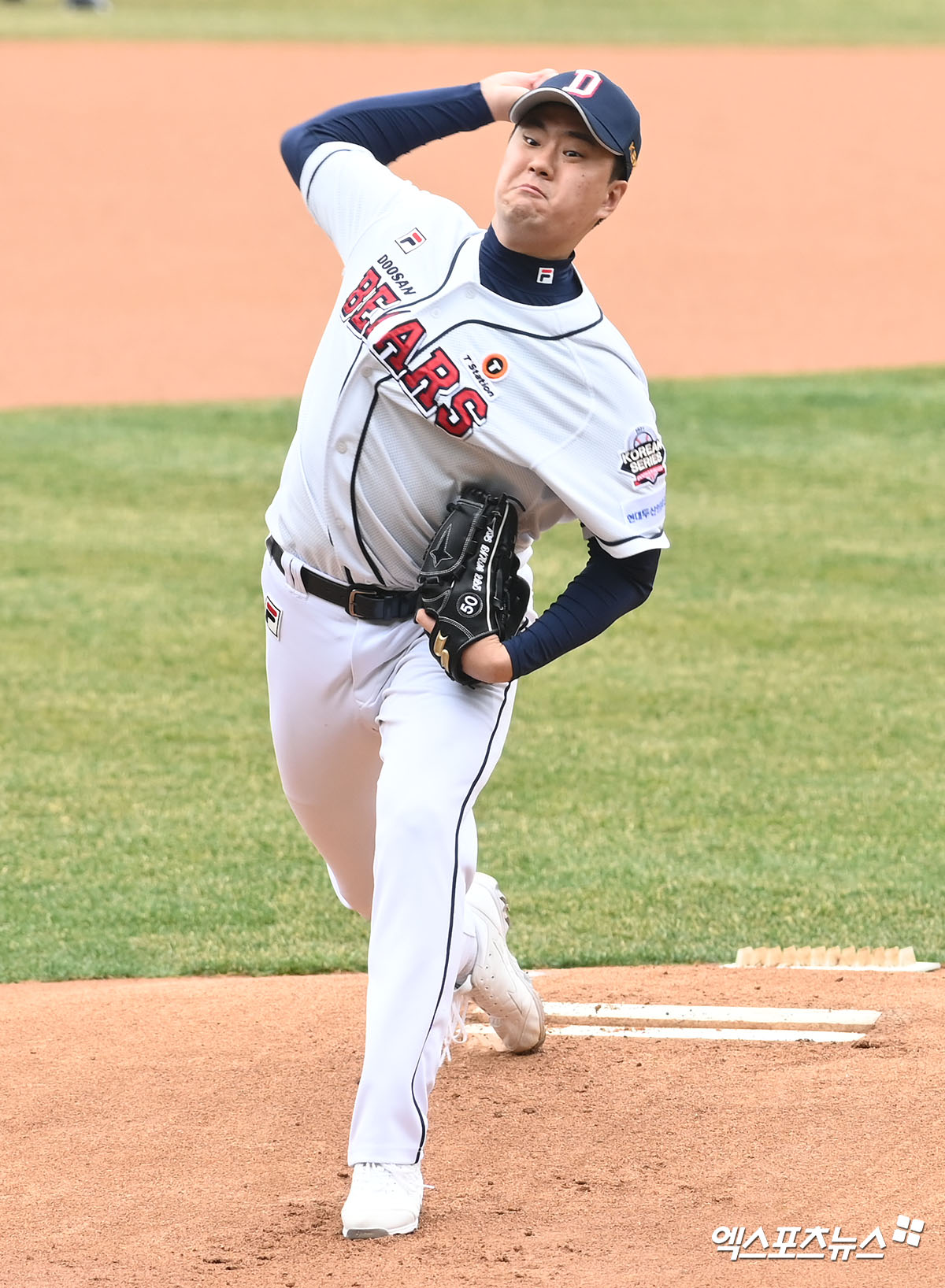 (엑스포츠뉴스 잠실, 고아라 기자) 24일 오전 서울 송파구 잠실야구장에서 열리는 '2022 KBO리그' LG 트윈스와 두산 베어스의 시범경기, 1회초 두산 선발투수 이영하가 공을 힘차게 던지고 있다.