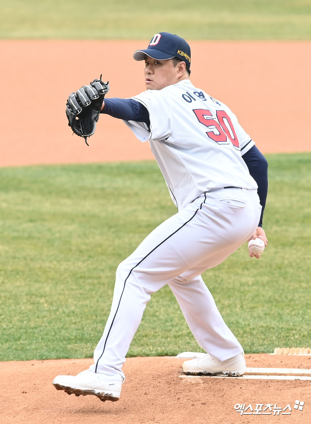 (엑스포츠뉴스 잠실, 고아라 기자) 24일 오전 서울 송파구 잠실야구장에서 열리는 '2022 KBO리그' LG 트윈스와 두산 베어스의 시범경기, 1회초 두산 선발투수 이영하가 공을 힘차게 던지고 있다.