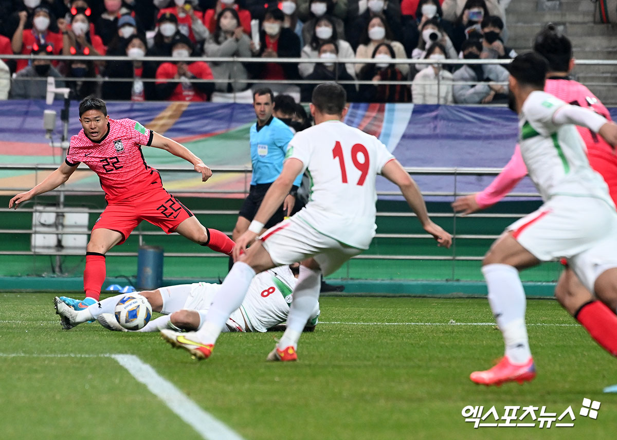 (엑스포츠뉴스 서울월드컵경기장, 김한준 기자) 24일 오후 서울 성산동 서울월드컵경기장에서 열린 '2022 카타르 월드컵 아시아지역 최종예선 A조 9차전' 대한민국과 이란의 경기, 대한민국이 이란 상대로 2:0의 스코어로 승리했다. 대한민국은 2005년 이후 17년 만에 홈에서 이란을 꺾으며 승점 3점을 얻어 A조 선두로 올라섰다.