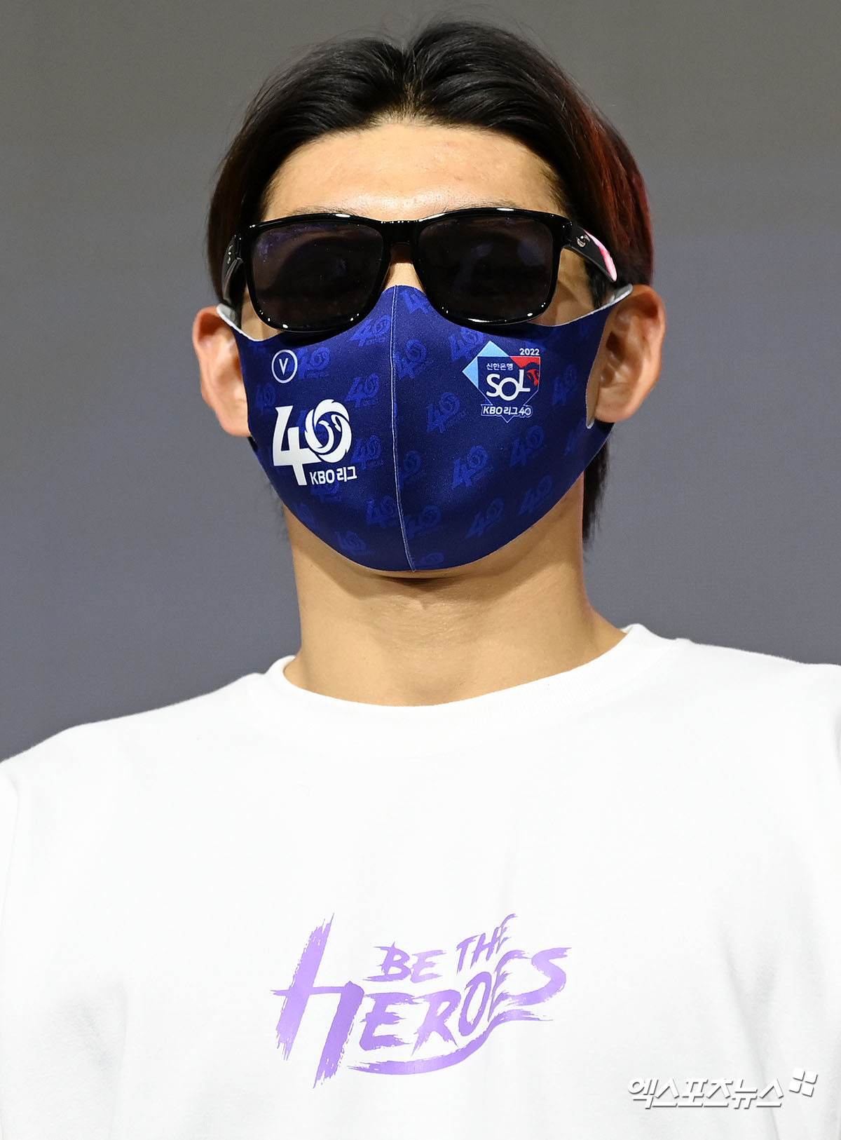 (엑스포츠뉴스 한남동, 김한준 기자) 31일 오후 서울 한남동 그랜드하얏트서울에서 열린 ‘2022 신한은행 SOL KBO’ 미디어데이, 키움 이정후가 포즈를 취하고 있다.