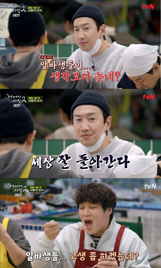 이날 방송에서 이광수는 "알바생들이 생각보다 늦네. 세상 잘 돌아간다"라며 "나 때는 안 그랬는데"라고 말하며 꼰대의 면모를 드러내 웃음을 자아냈다.