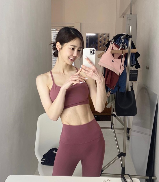 사진에는 김가영이 거울 속 자신을 촬영하는 모습이 담겨 있다. 김가영은 운동복을 입고 건강미 넘치는 몸매를 자신감 있게 드러냈다.