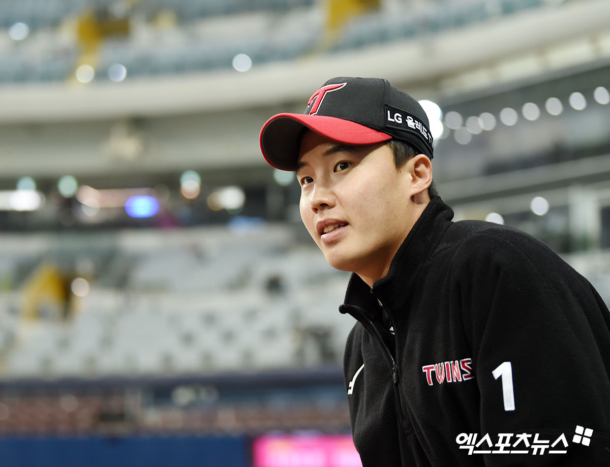 (엑스포츠뉴스 고척, 김한준 기자) 5일 오후 서울시 구로구 고척스카이돔에서 열린 ’2022 신한은행 SOL KBO리그’ LG 트위스와 키움 히어로즈의 경기, LG 선발투수 임찬규가 웜업을 위해 그라운드로 나서고 있다.