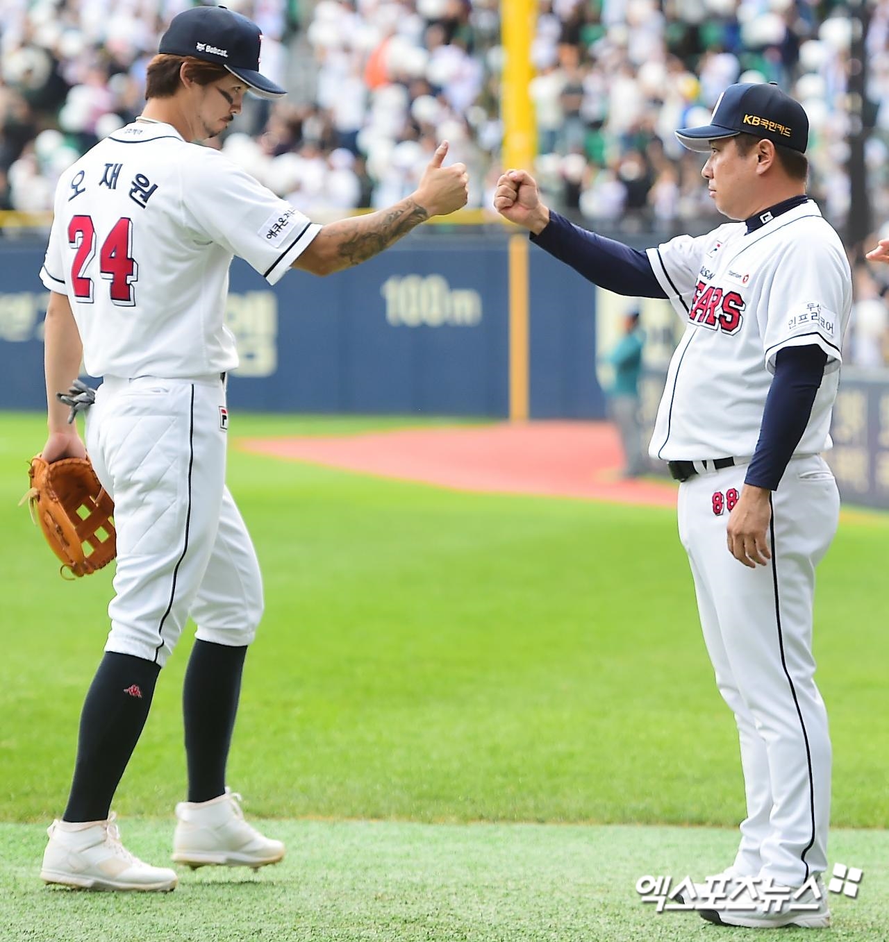 김 감독은 '오재원이 오늘 필승 카드인가?'를 묻는 취재진의 질문에 "필승 카드인 걸 어떻게 아셨냐"라고 농담을 던진 뒤 "오재원은 일단 감이 괜찮다. 경기를 나갈 때가 되지 않았나 생각한다"고 설명했다.