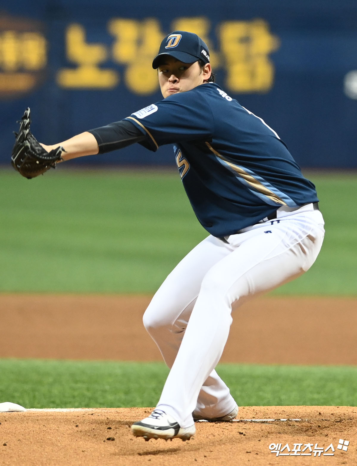 (엑스포츠뉴스 고척, 고아라 기자) 12일 오후 서울시 구로구 고척스카이돔에서 열린 ’2022 신한은행 SOL KBO리그’ NC 다이노스와 키움 히어로즈의 경기, 1회말 NC 선발투수 송명기가 공을 힘차게 던지고 있다.