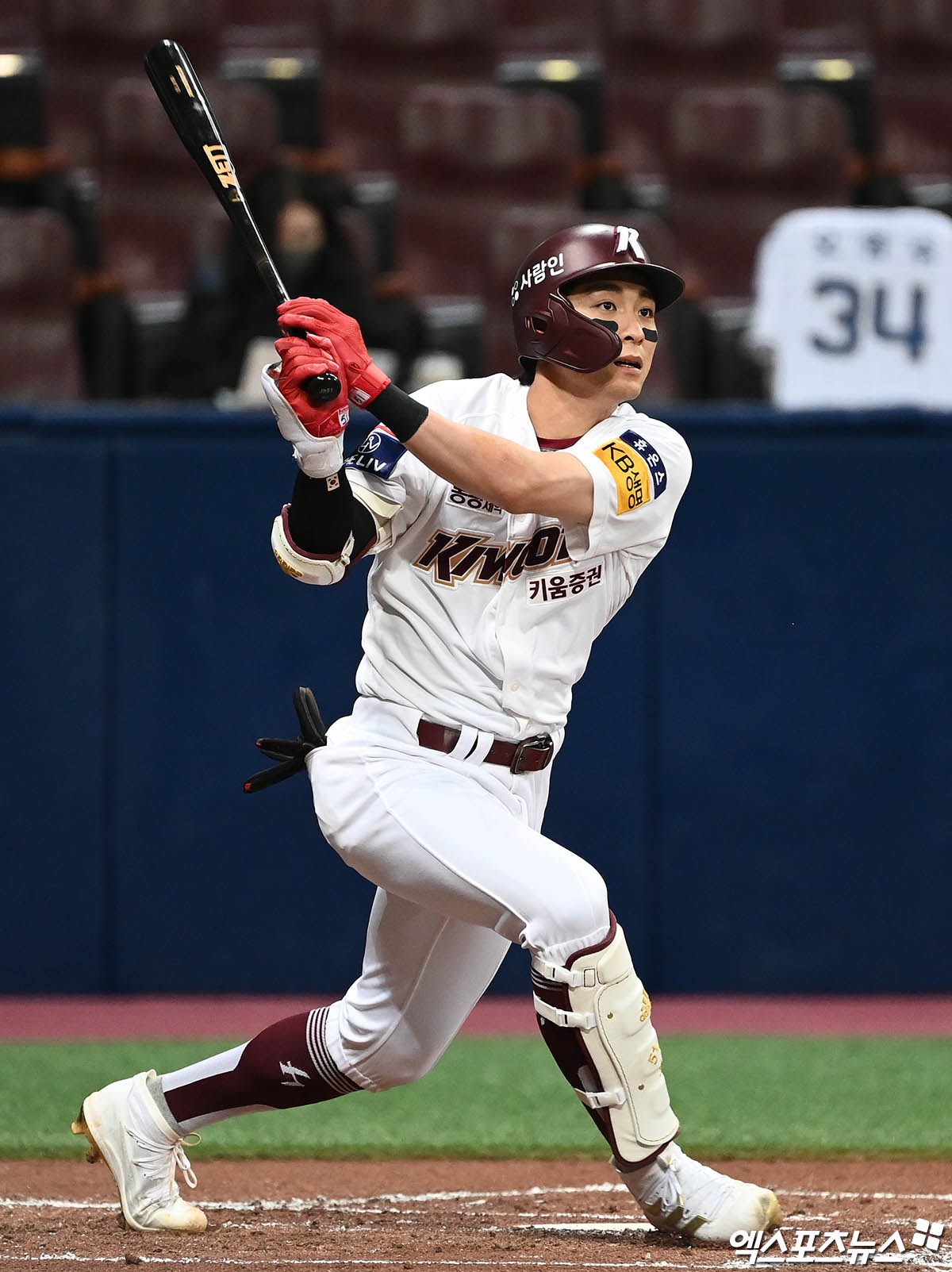 (엑스포츠뉴스 고척, 박지영 기자) 13일 오후 서울 구로구 고척스카이돔에서 열린 '2022 신한은행 SOL KBO리그' NC 다이노스와 키움 히어로즈의 경기, 1회말 무사 1,2루 키움 이정후가 1타점 적시타를 때려내고 있다.
