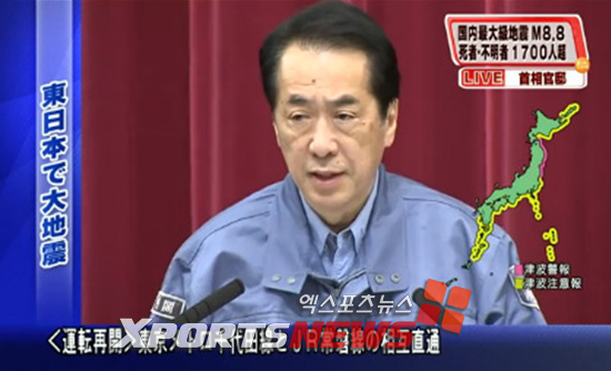 [사진 = 간나오토 총리 기자회견 장면 ⓒ 후지TV 영상 캡처]