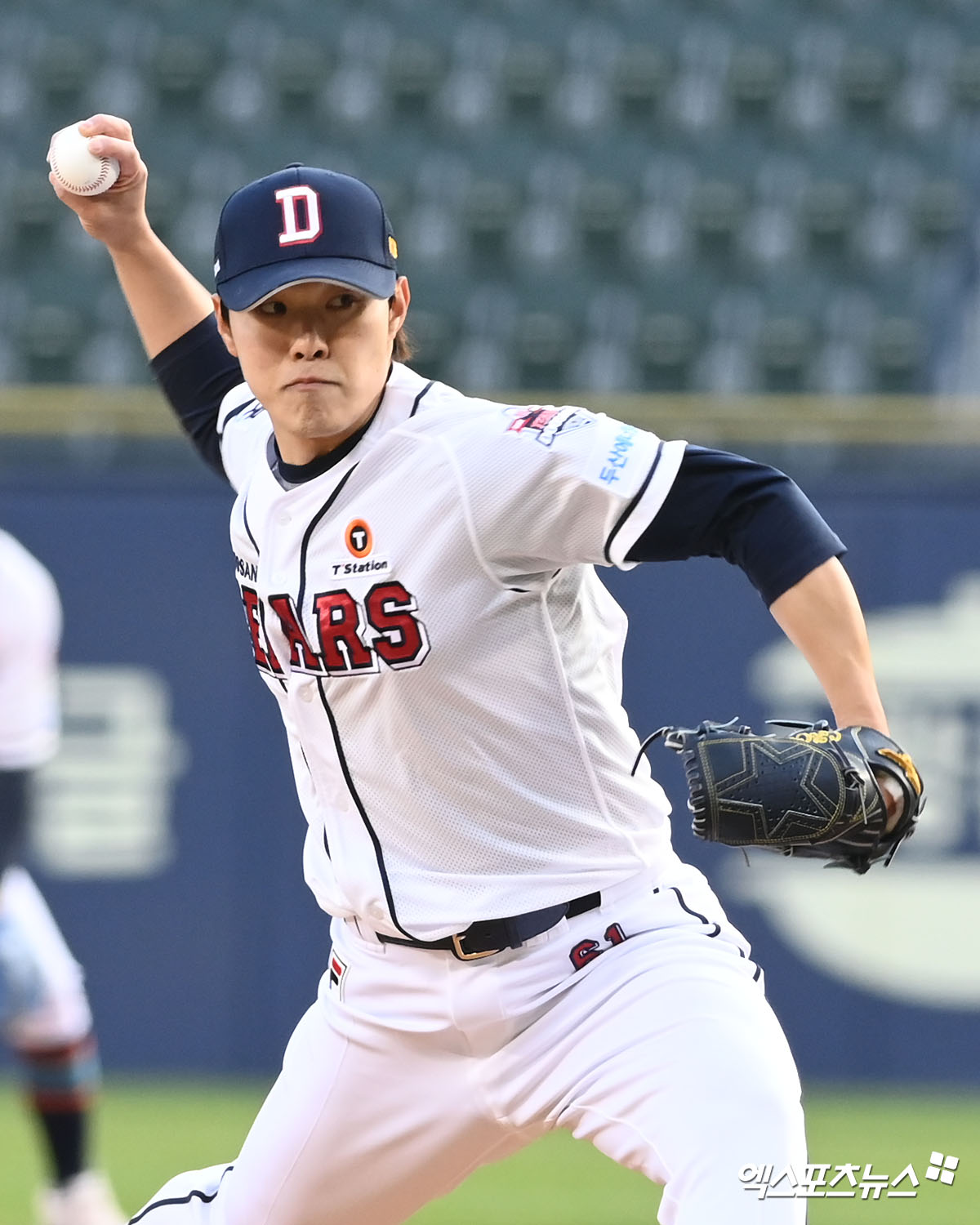 (엑스포츠뉴스 잠실, 고아라 기자) 15일 오후 서울 송파구 잠실야구장에서 열린 '2022 신한은행 KBO리그' 키움 히어로즈와 두산 베어스의 경기, 1회초 두산 선발투수 최원준이 공을 힘차게 던지고 있다.