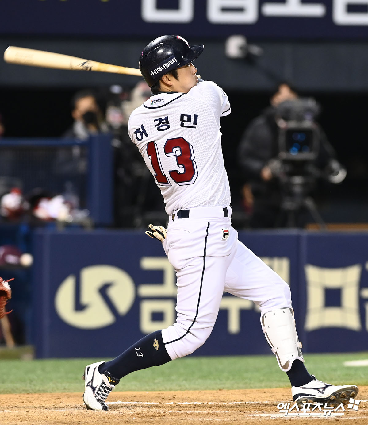 (엑스포츠뉴스 잠실, 고아라 기자) 15일 오후 서울 송파구 잠실야구장에서 열린 '2022 신한은행 KBO리그' 키움 히어로즈와 두산 베어스의 경기, 9회말 무사 1루 두산 허경민이 1루타를 날리고 있다.