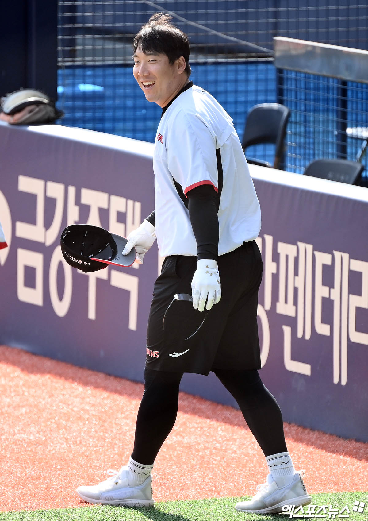 (엑스포츠뉴스 잠실, 박지영 기자) 20일 오후 서울 송파구 잠실야구장에서 열리는 '2022 신한은행 SOL KBO리그' KT 위즈와 LG 트윈스의 경기에 앞서 LG 김현수가 훈련을 위해 그라운드로 나서고 있다.