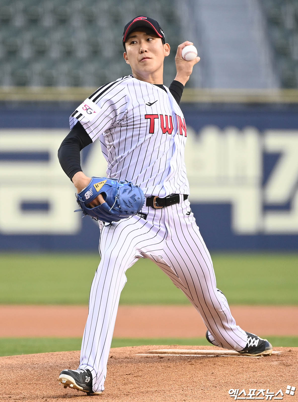 (엑스포츠뉴스 잠실, 박지영 기자) 21일 오후 서울 송파구 잠실야구장에서 열린 '2022 신한은행 SOL KBO리그' KT 위즈와 LG 트윈스의 경기, 1회초 LG 선발투수 손주영이 역투하고 있다.