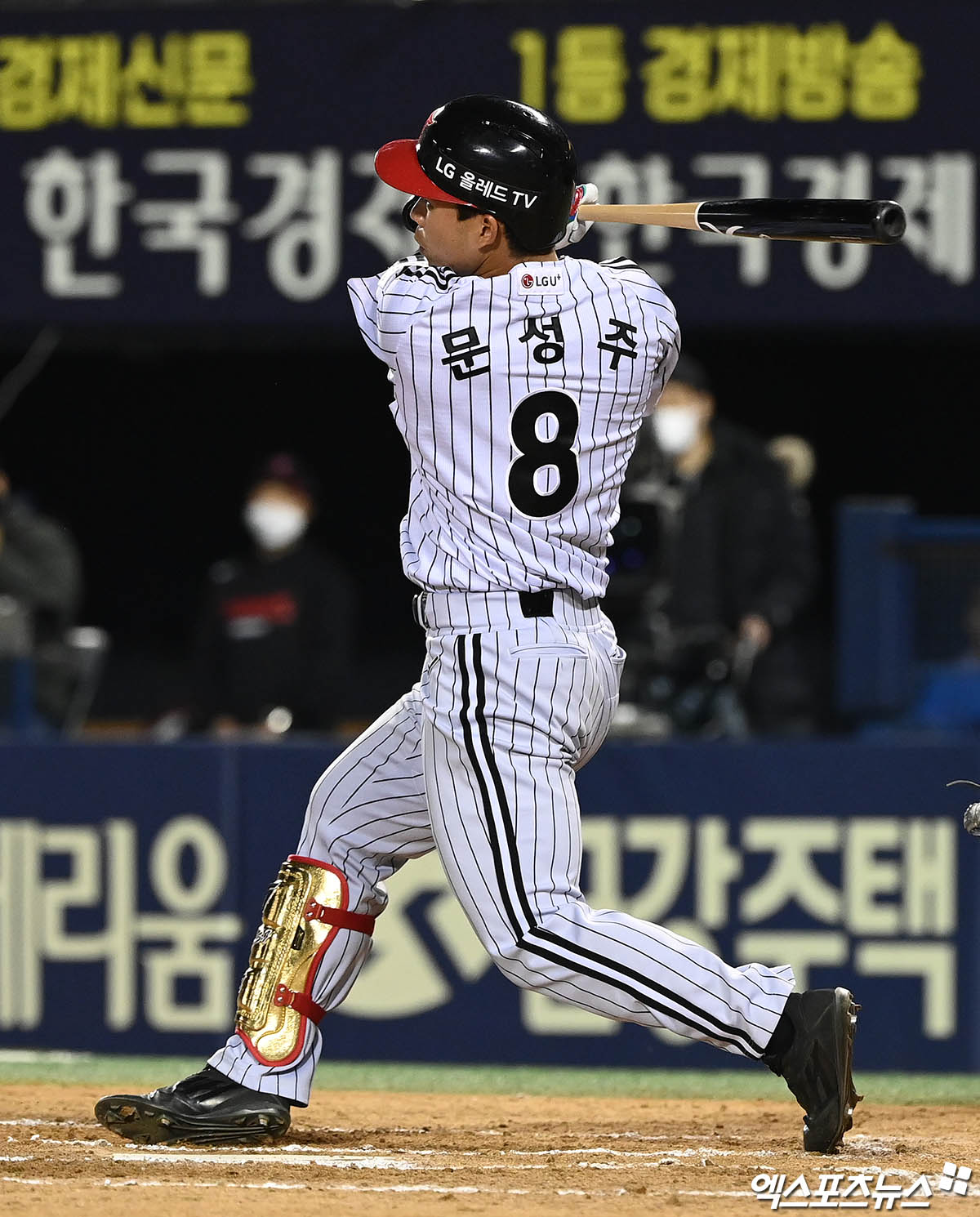 (엑스포츠뉴스 잠실, 박지영 기자) 21일 오후 서울 송파구 잠실야구장에서 열린 '2022 신한은행 SOL KBO리그' KT 위즈와 LG 트윈스의 경기, 6회말 2사 LG 문성주가 안타를 때려내고 있다.
