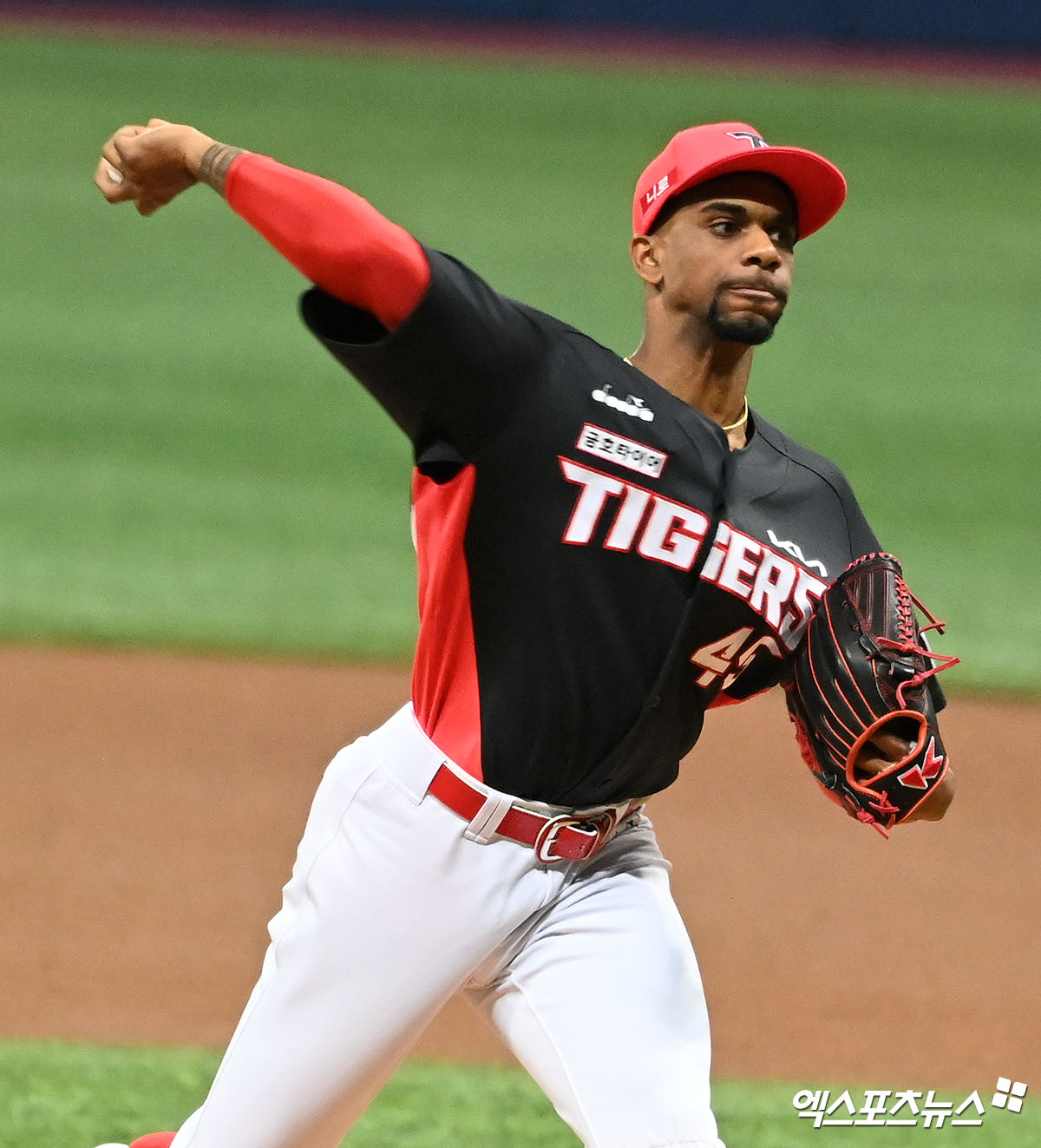(엑스포츠뉴스 고척, 김한준 기자) 22일 오후 서울시 구로구 고척스카이돔에서 열린 ’2022 신한은행 SOL KBO리그’ KIA 타이거즈와 키움 히어로즈의 경기, 1회말 KIA 선발투수 로니가 공을 힘차게 던지고 있다.
