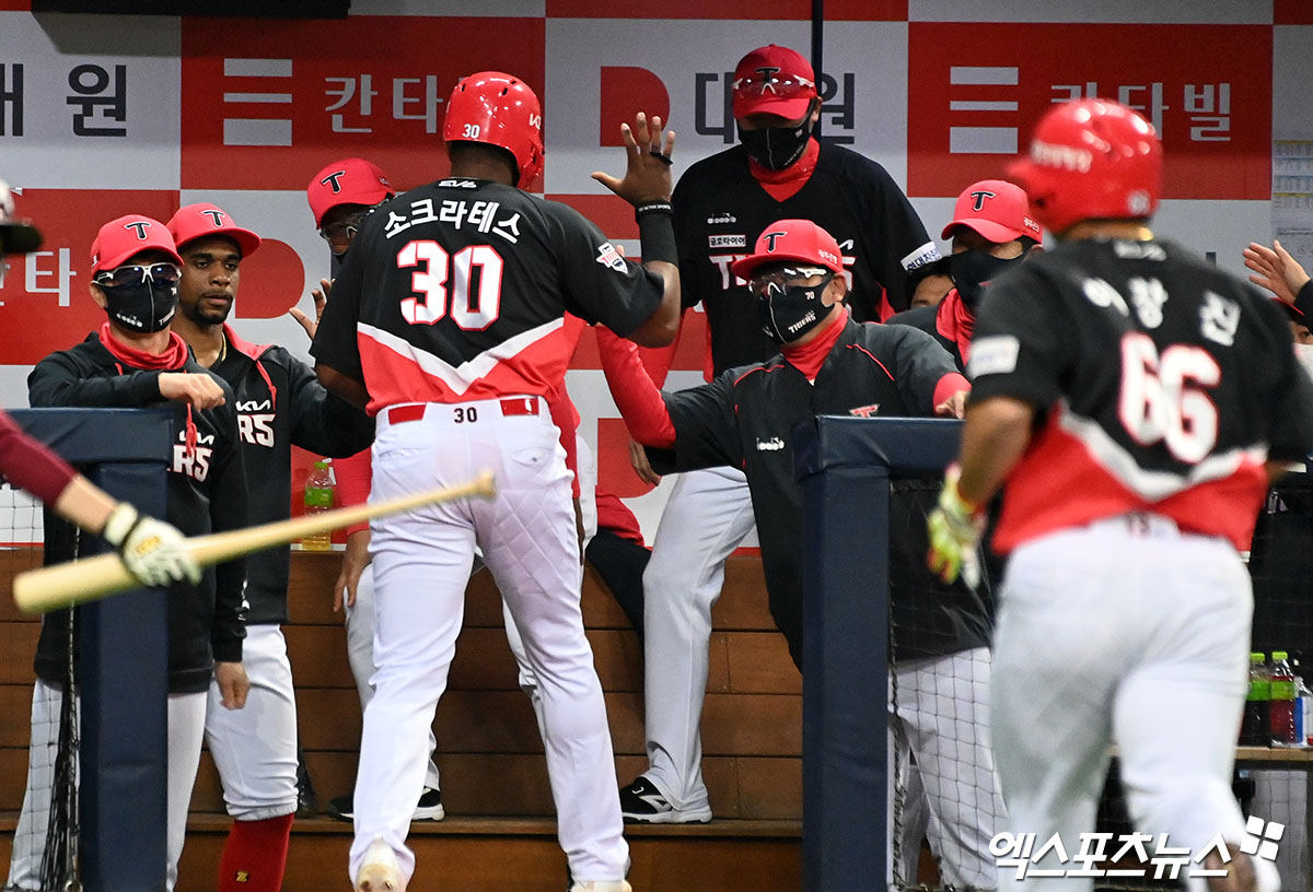 소크라테스가 이창진의 내야땅볼때 득점에 성공하고 있다.