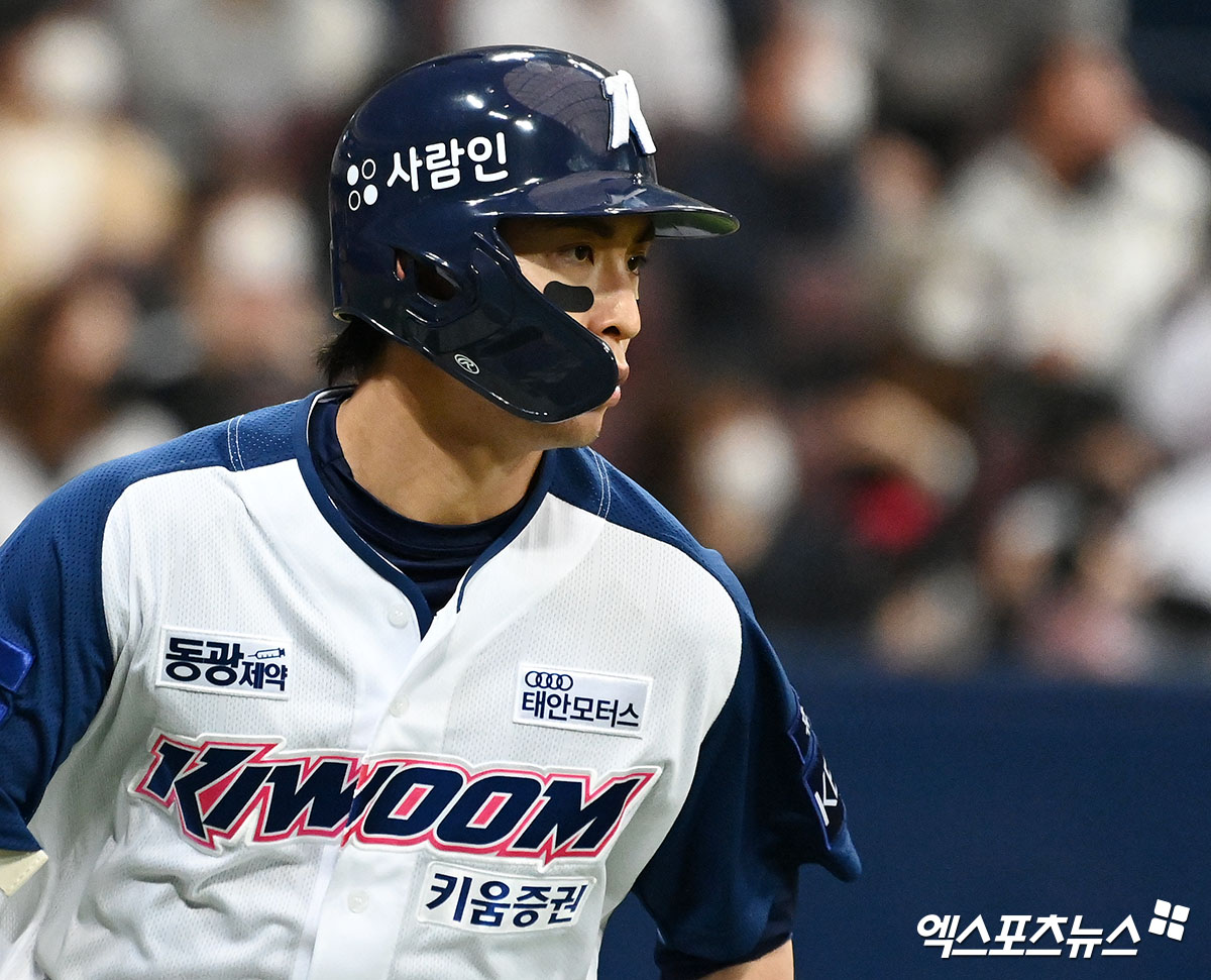(엑스포츠뉴스 고척, 김한준 기자) 23일 오후 서울시 구로구 고척스카이돔에서 열린 ’2022 신한은행 SOL KBO리그’ KIA 타이거즈와 키움 히어로즈의 경기, 3회말 1사 2,3루 키움 이정후가 2타점 2루타를 날리고 있다.