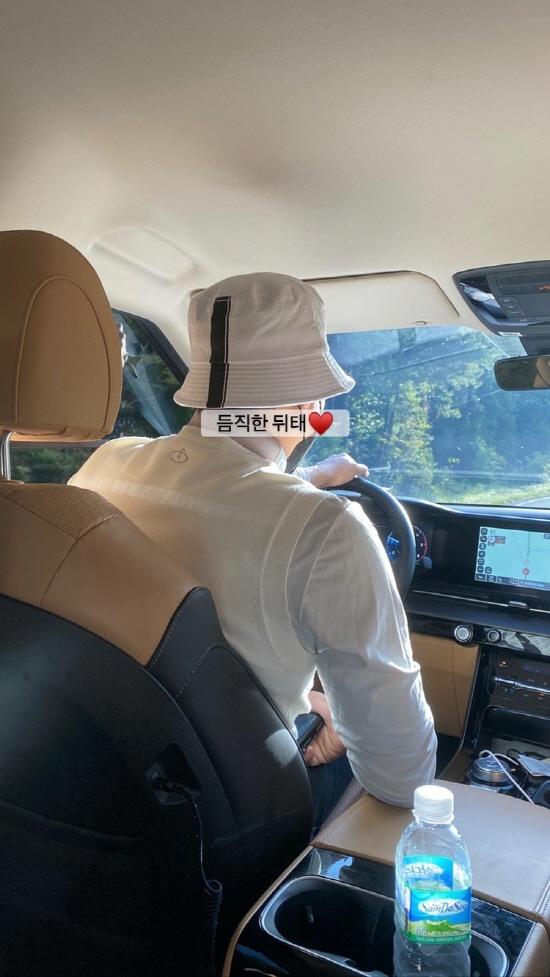 사진에는 운전 중인 이지훈의 뒷 모습이 담겨 있다. 하트 이모지를 통해 이지훈에 대한 아야네의 사랑을 엿볼 수 있다.