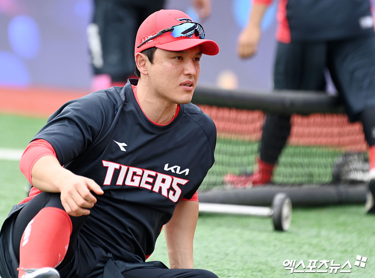 (엑스포츠뉴스 수원, 김한준 기자) 26일 오후 수원 KT위즈파크에서 열리는 ’2022 신한은행 SOL KBO리그’ KIA 타이거즈와 KT 위즈의 경기, KIA 박동원이 훈련에 임하고 있다.