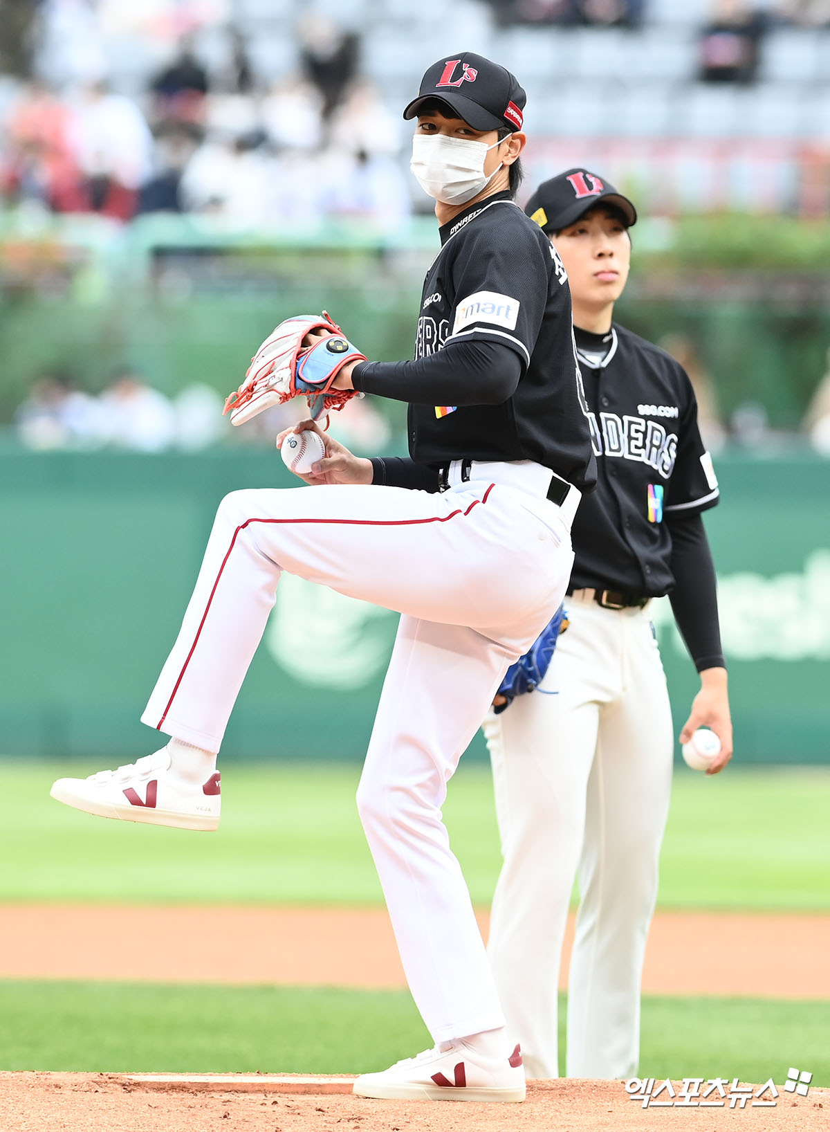 (엑스포츠뉴스 인천, 고아라 기자) 30일 오후 인천 SSG랜더스필드에서 열린 ’2022 신한은행 SOL KBO리그’ 두산 베어스와 SSG 랜더스의 경기, 샤이니 민호가 시구에 임하고 있다.