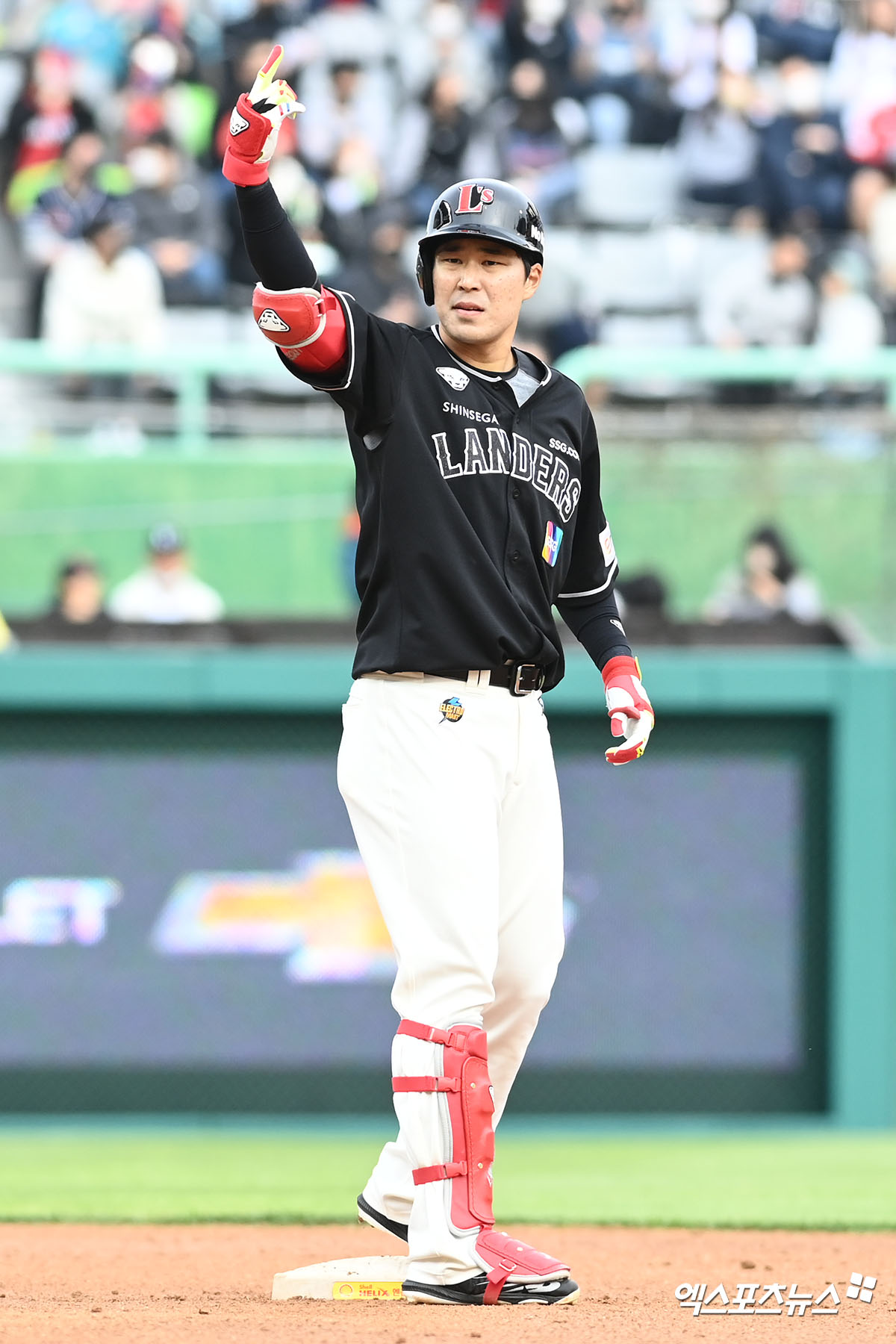 (엑스포츠뉴스 인천, 고아라 기자) 30일 오후 인천 SSG랜더스필드에서 열린 ’2022 신한은행 SOL KBO리그’ 두산 베어스와 SSG 랜더스의 경기, 1회말 1사 1,2루 SSG 한유섬이 2타점 2루타를 날린 뒤 세리머니를 하고 있다.