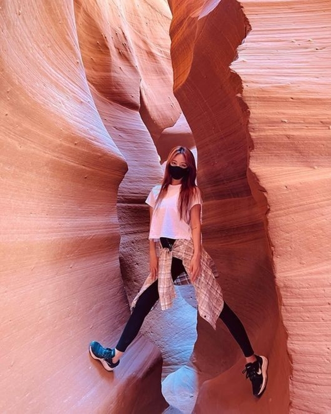공개된 사진 속 한예슬은 미국 라스베이거스에 위치한 앤텔로프 캐니언을 방문한 모습. 그는 10살 연하의 남자친구와 함께 앤텔로프 캐니언을 관광하며 사진을 여러 장 남겼다.
