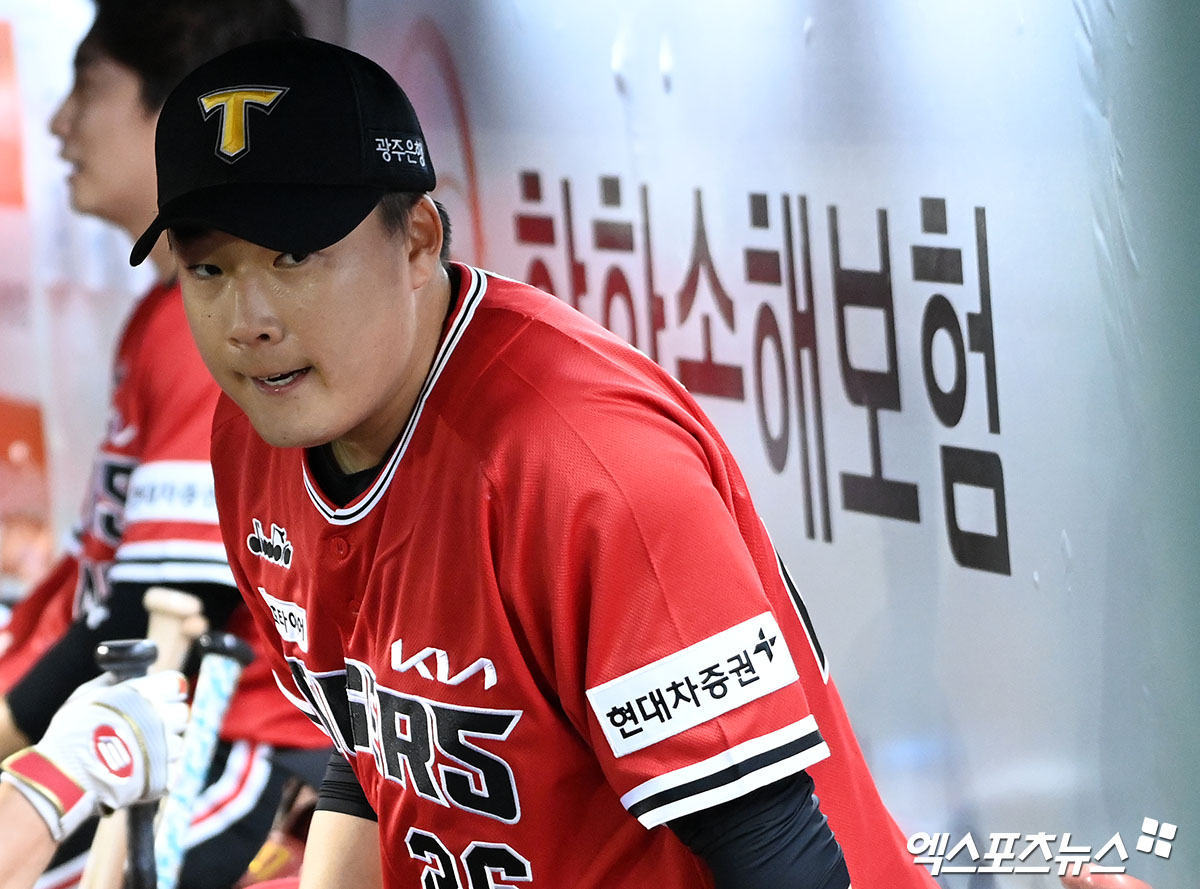 (엑스포츠뉴스 대전, 김한준 기자) 6일 오후 대전 한화생명 이글스파크에서 열린 ’2022 신한은행 SOL KBO리그’ KIA 타이거즈와 한화 이글스의 경기, 3회말 수비를 마친 KIA 선발투수 한승혁이 더그아웃에서 숨을 고르고 있다.